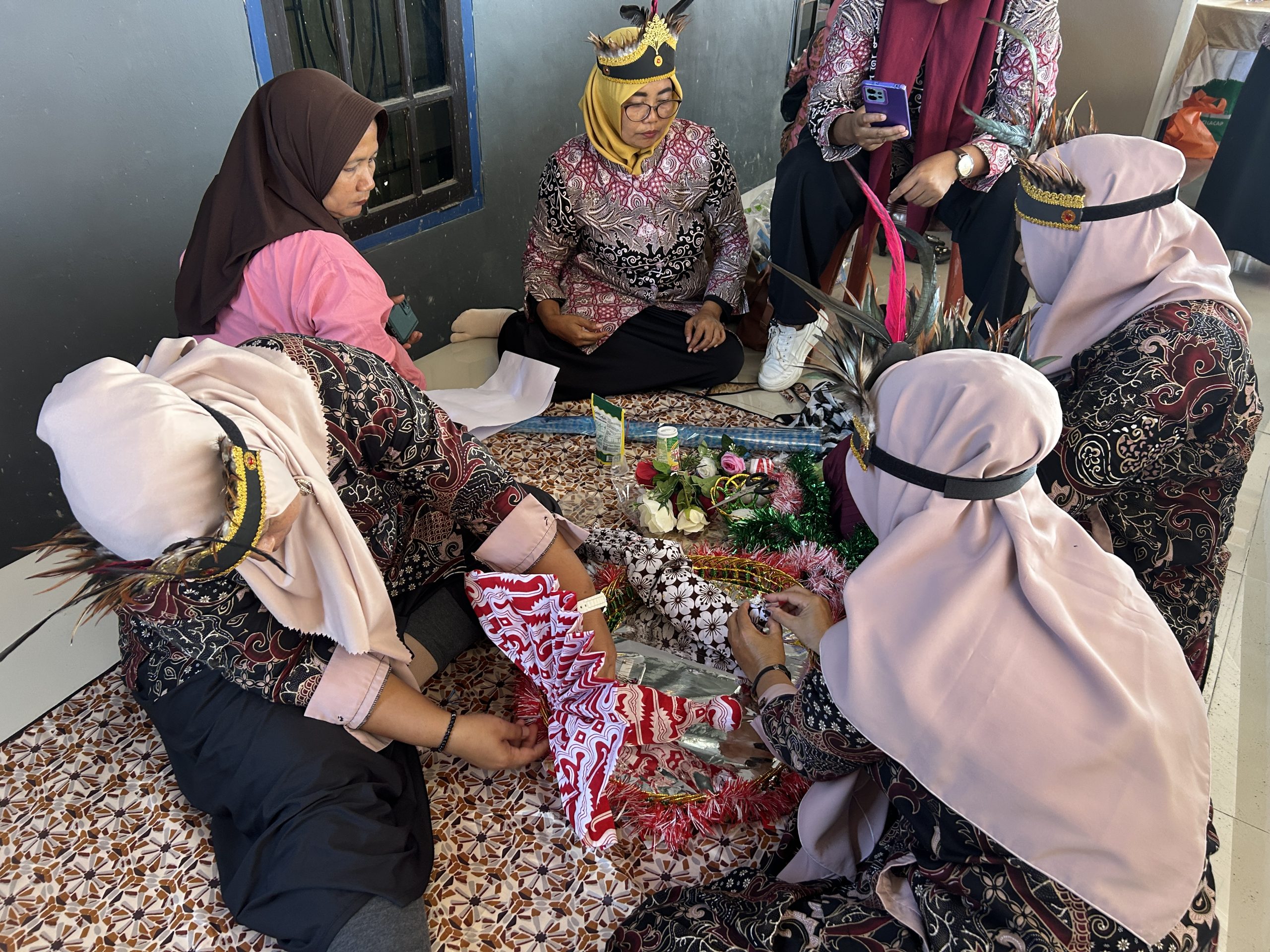 Lomba Mewiru – peserta menunjukkan keterampilan dengan membuat Rok kain dari Jarik.
